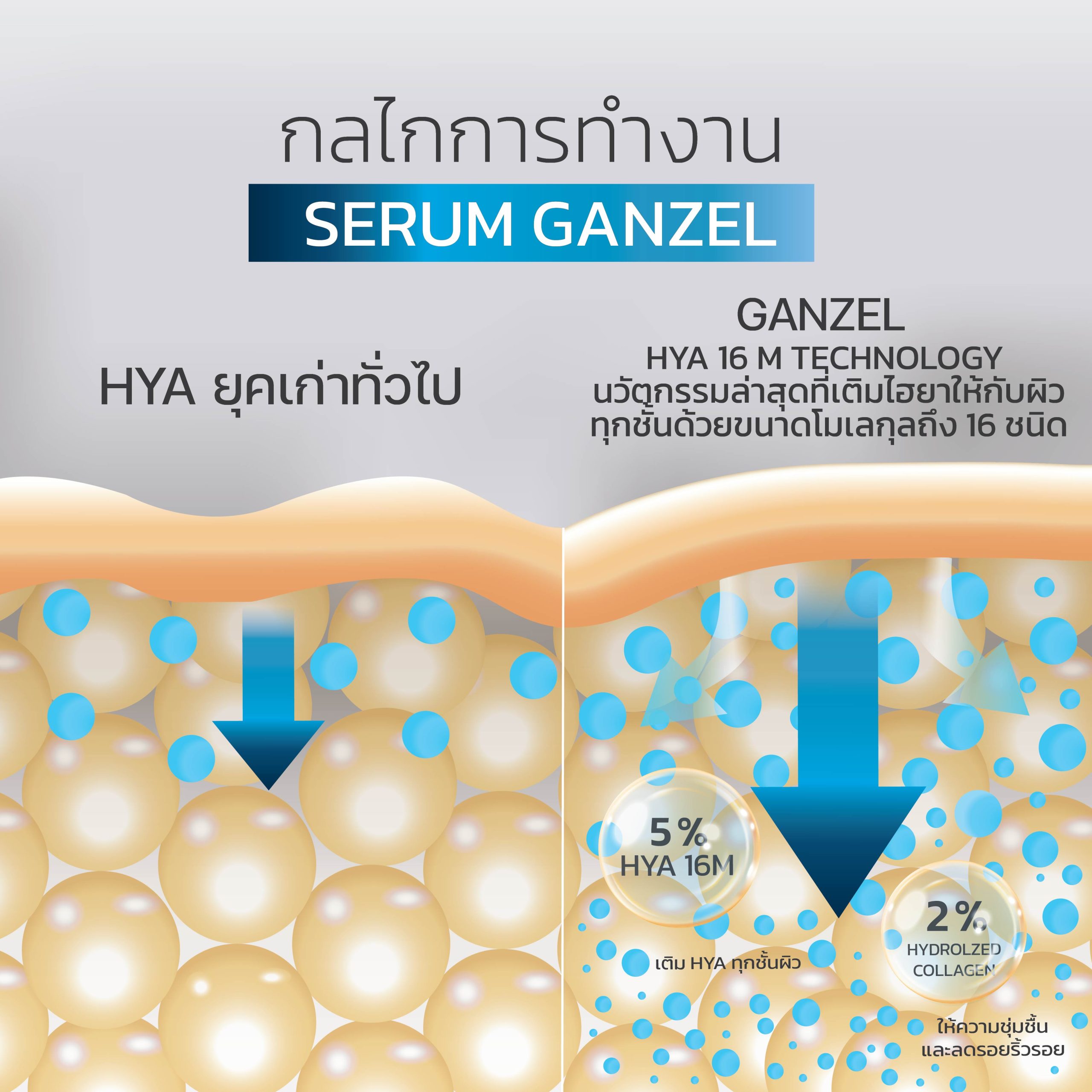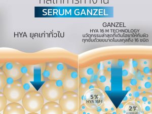 - ไฮยา 16 ชนิดโมเลกุล มีขนาดที่ใหญ่จนถึงเล็ก รวมทั้งมีการจับกับ Polymer อื่นๆ ทำให้ซึมเข้าสู่ผิวในทุกชั้นได้ดี คงตัวอยู่ได้นานในชั้นผิว ช่วยให้ผิวชุ่มชื่นยาวนาน เต่งตึง ยืดหยุ่น