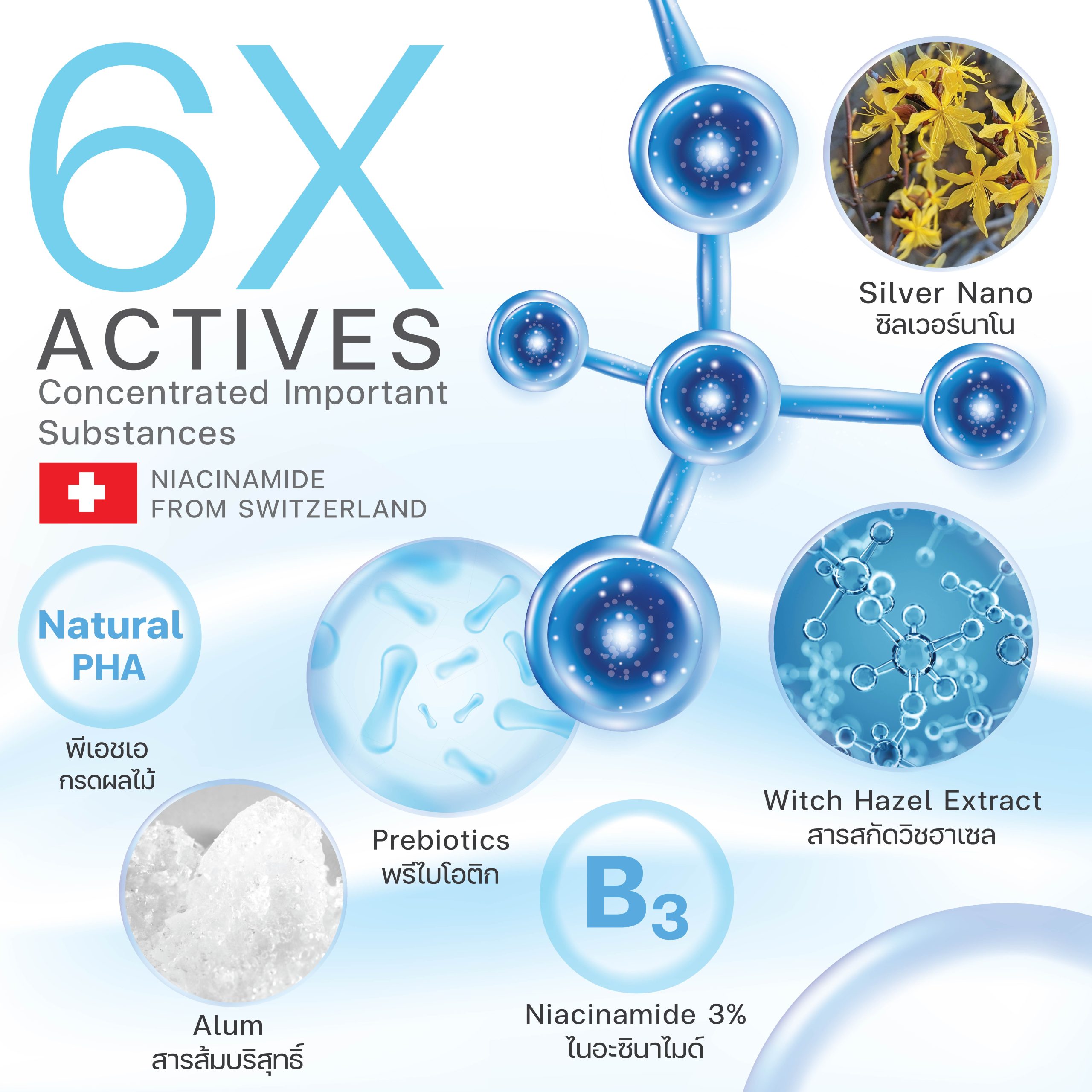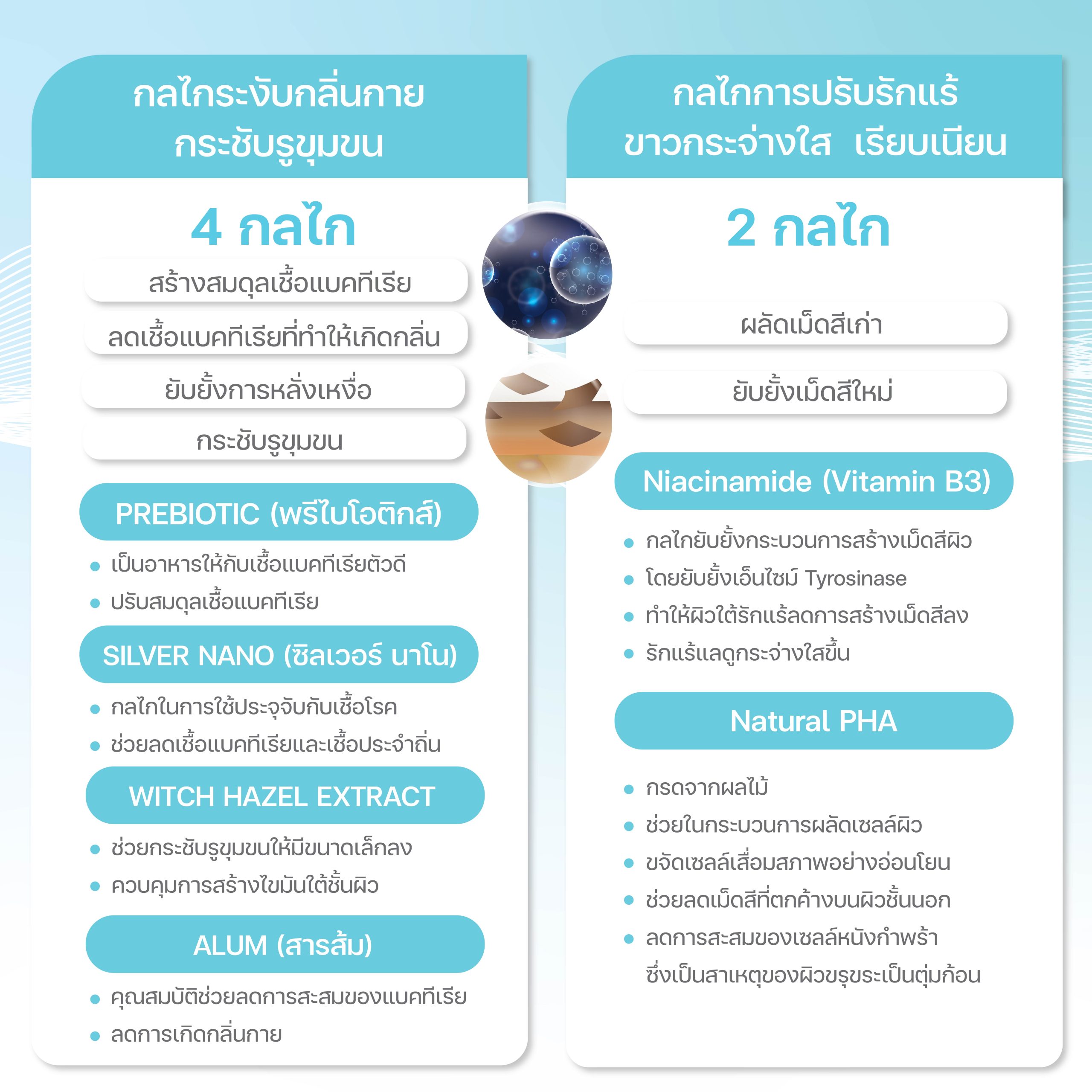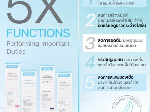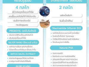 - ไม่มีสารก่อให้เกิดการแพ้ระคายเคือง เช่น แอลกอฮอล์ น้ำหอม