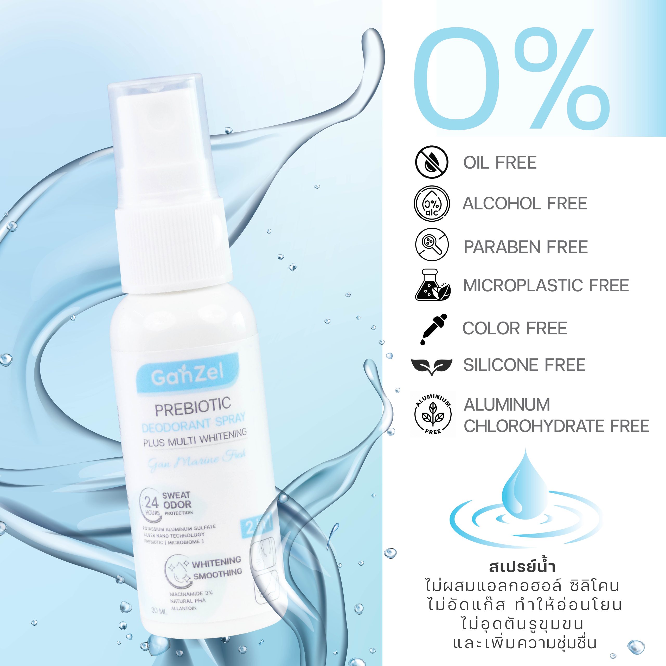 - ไม่มีสารอุดตันรูขุมขน และอุดตันต่อมเหงือ เช่น ซิลิโคน และอลูมิเนียม คลอโรไฮเดรต ซึ่งพบทั่วไปในผลิตภัณฑ์ระงับกลิ่น