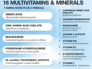- CHROMIUM AMINO ACID CHELATE – ช่วยปรับสมดุลน้ำตาลให้ปกติ ช่วยเพิ่มประสิทธิภาพกระบวนการเผาผลาญ