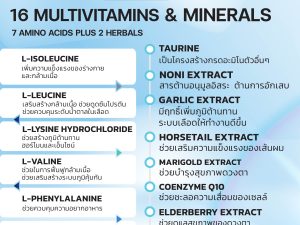 - L-PHENYLALANINE – ช่วยลดความเจ็บปวดโดยเพิ่มการผลิตสารเอ็นโดรฟิน ช่วยควบคุมความอยากอาหาร