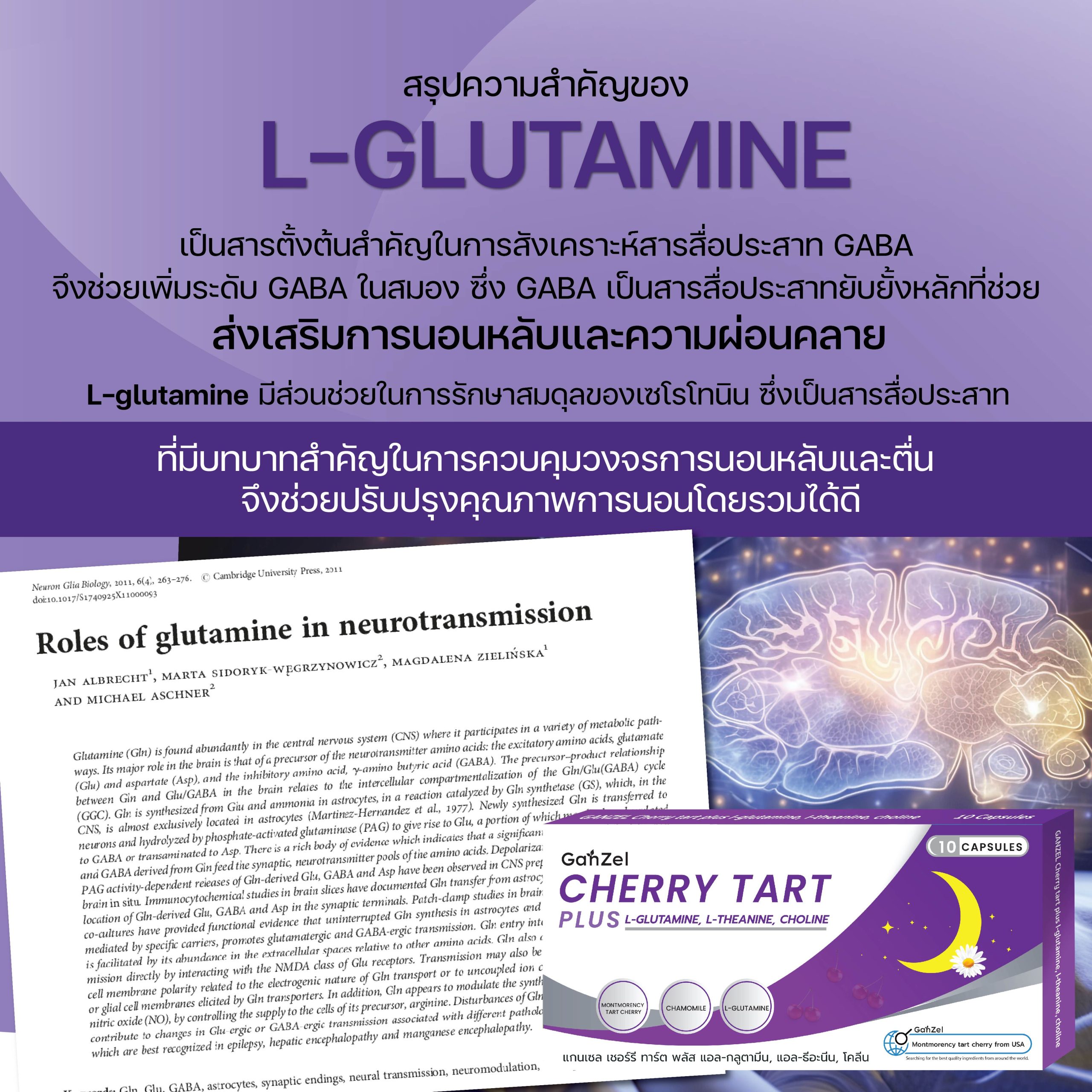 L-GLUTAMINE : ช่วยกระตุ้นการหลั่งโกรทฮอร์โมน (Growth hormone ) ช่วยให้ร่างกายใช้โปรตีนในการซ่อมแซมฟื้นฟูร่างกายได้ดีขึ้น ช่วยให้ร่างกายผ่อนคลาย ลดอาการเครียด และช่วยเพิ่มประสิทธิภาพในการนอนหลับ